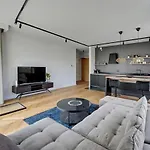 1-slaapkamer Wave Apartments - Yacht Park 2 zijn gelegen in het strand en bieden gasten privé parkeergelegenheid en wifi. Bovendien ligt het 60 m^2 grote appartement op ongeveer 450 meter verwijderd van de ORP Błyskawica.